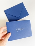 Конверт розміром 11*16 см, виготовлений із дизайнерського картону плотністю 280 г. із тисненням срібного кольору (може бути золото)