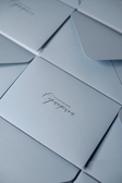 Конверт розміром 11*16 см, виготовлений із дизайнерського картону плотністю 250 г. із тисненням срібного кольору (може бути золото)