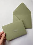 Конверт розміром 11*16 см, виготовлений із дизайнерського картону плотністю 250 г. із тисненням срібного кольору
